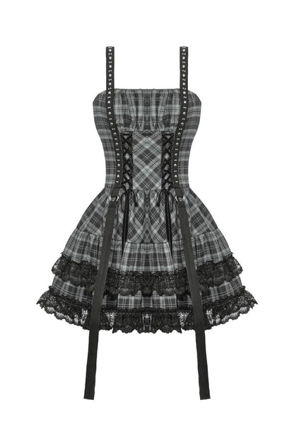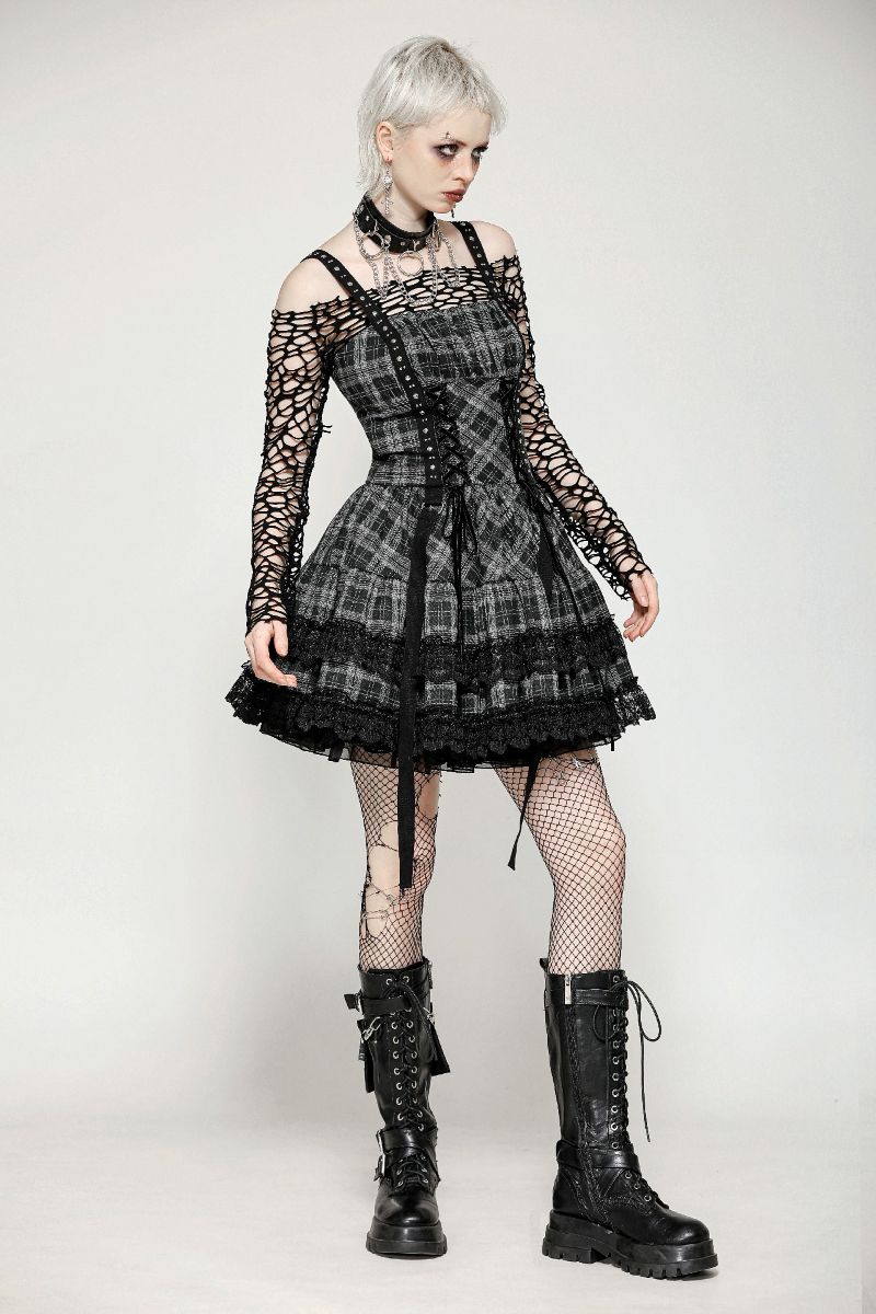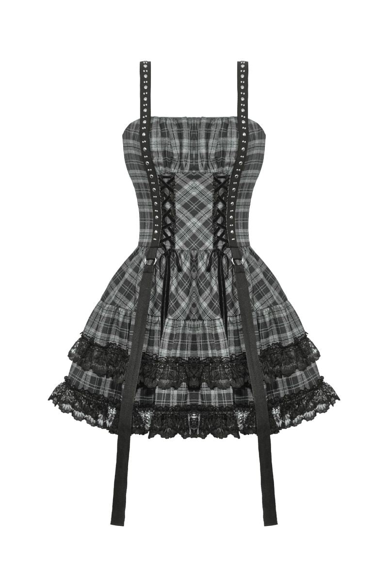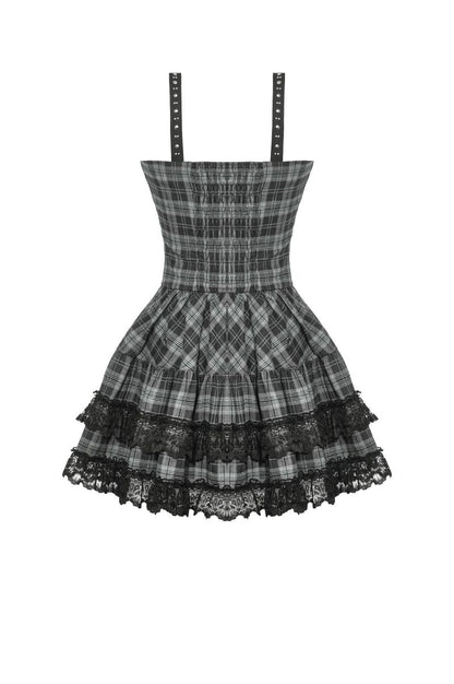 - kurzes Grau kariertes Kleid Avelina Gray Tartan Short Dress von Dark in Love