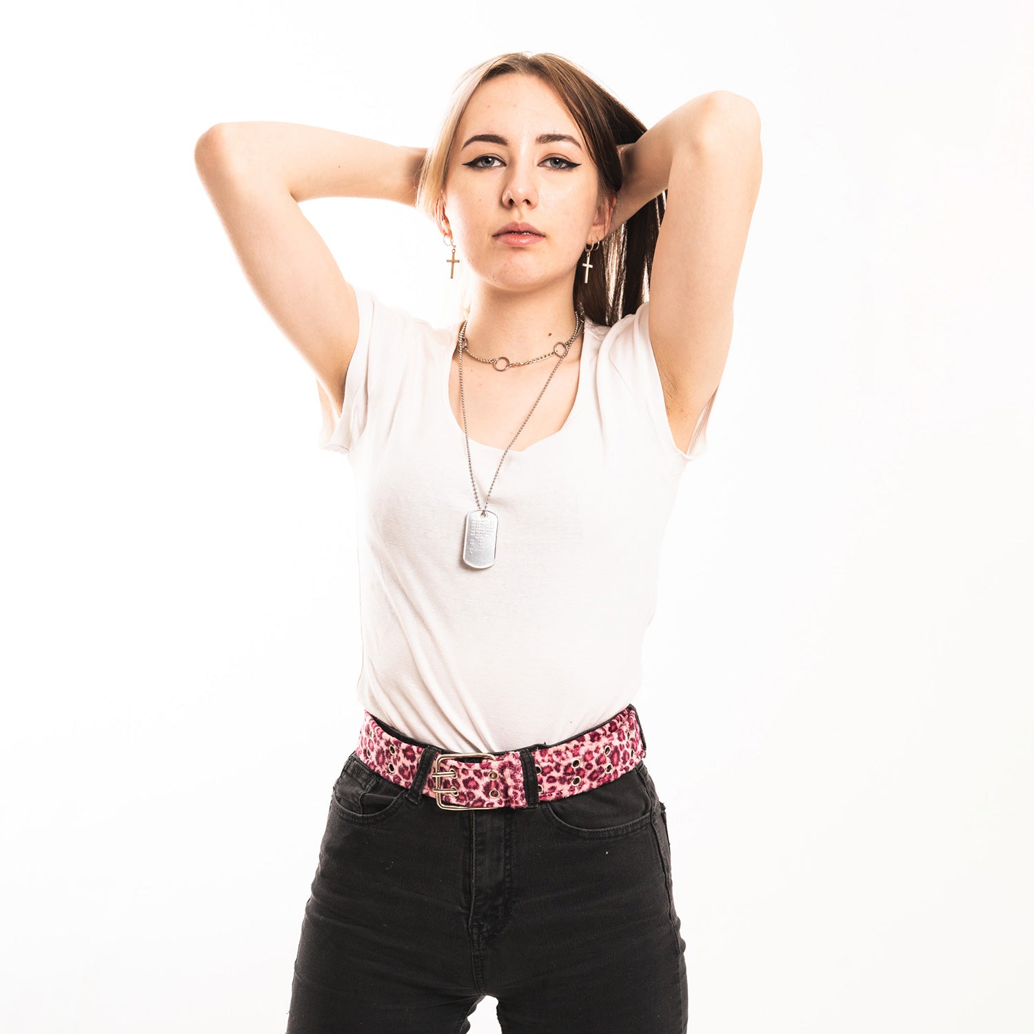 Allgemeine Informationen über Gürtel 2-reihig Leopard Pink Pyramidennieten