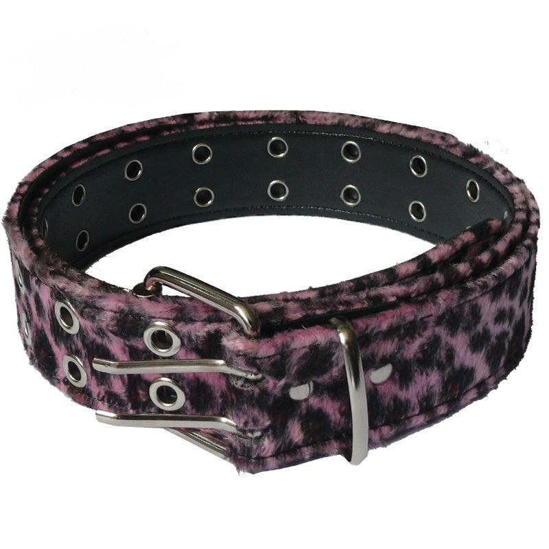 - Pinker Gürtel 2-reihig Leopard Pink Ösen mit Kunstfell