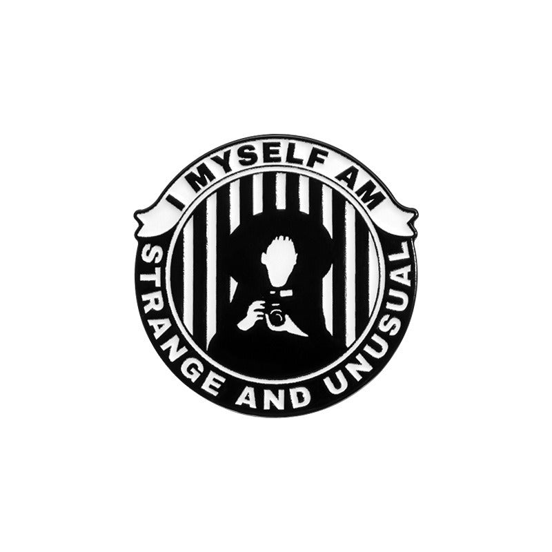 - Kleiner, runder, schwarz-weißer Emaille-Anstecker STRANGE AND UNUSUAL ENAMEL PIN von Moon Attic