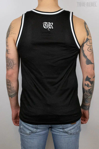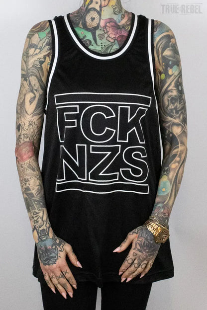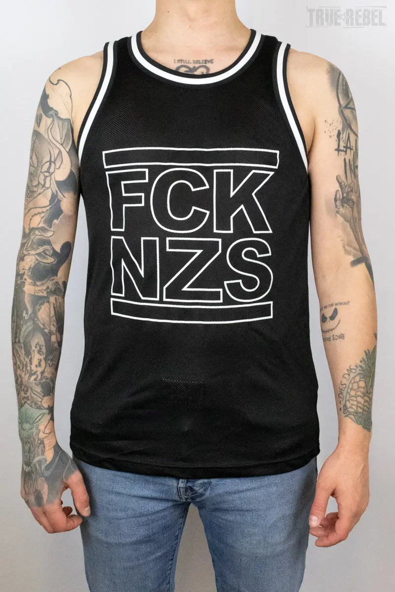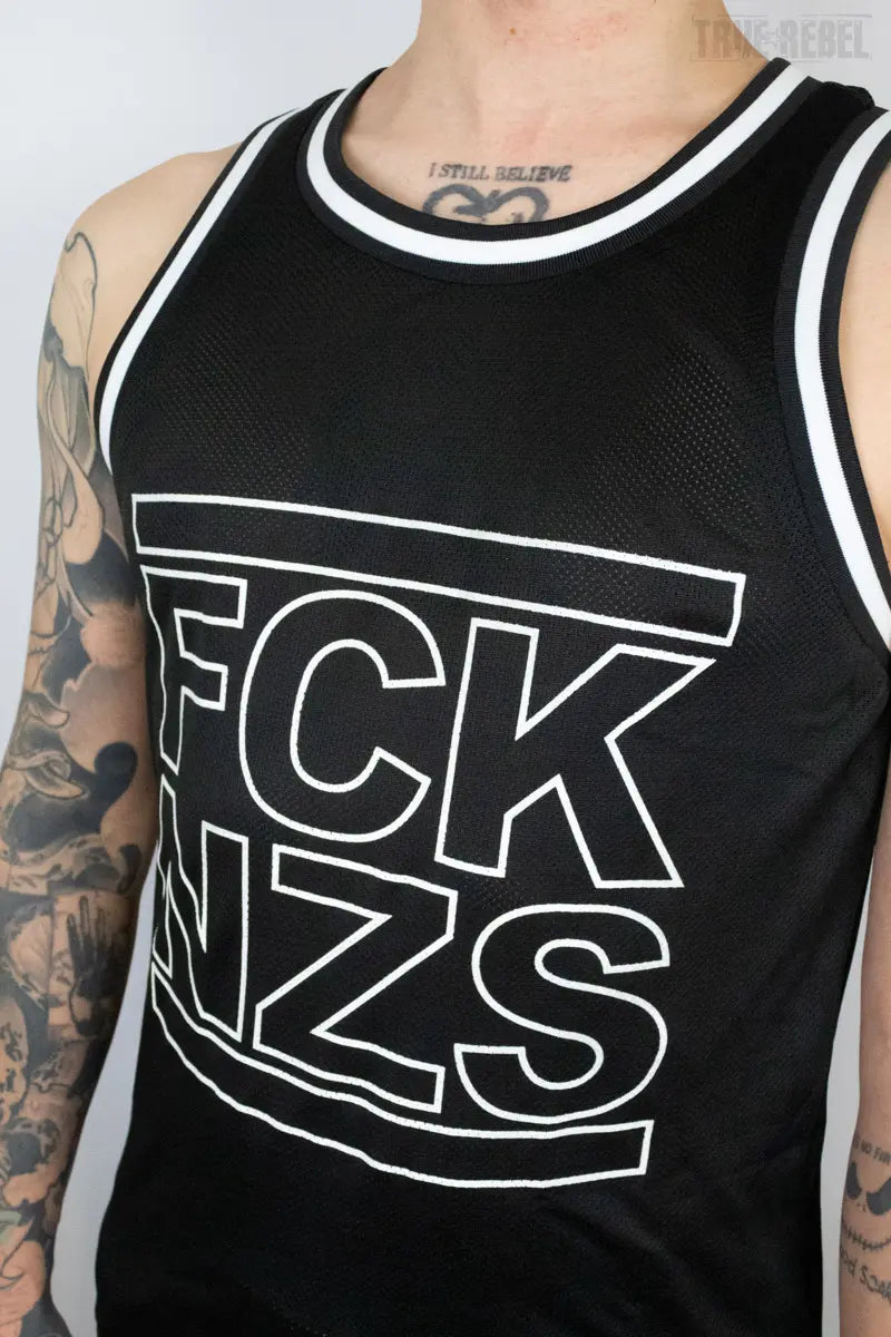 True Rebel Mesh Tank FCK NZS Outline Black